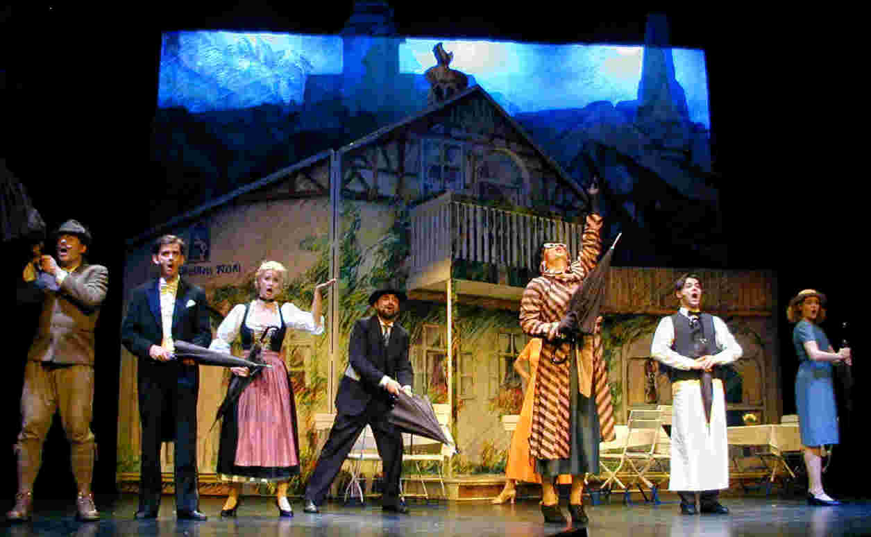 singende Welt stellt das Mindener Team perfekt und augenzwinkernd auf die Bühne, in ein märchenhaft buntes Bühnenbild von Laurentiu Tuturuga mit Lederhosen-Dirndl-Kostümen von Karen Friedrich. Die Regie von