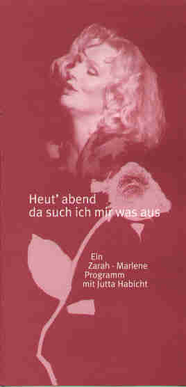 Sie war die Marlene Dietrich in dem Musical “Marlene” am Theater am Kurfürstendamm in Berlin. Zahlreiche Galas, Fernsehauftritte, Plattenproduktionen. |